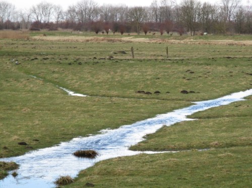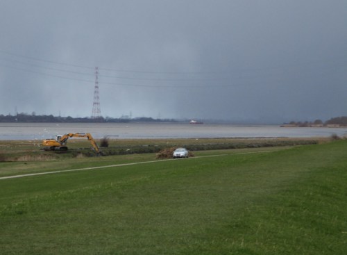 Gen Stade – da wird zur Zeit doch das Reet nicht eingesammelt. Der Graben vor dem Deich wird geräumt.