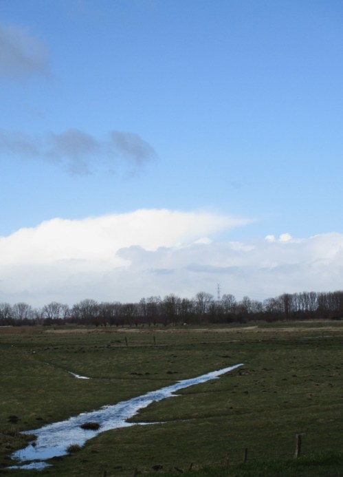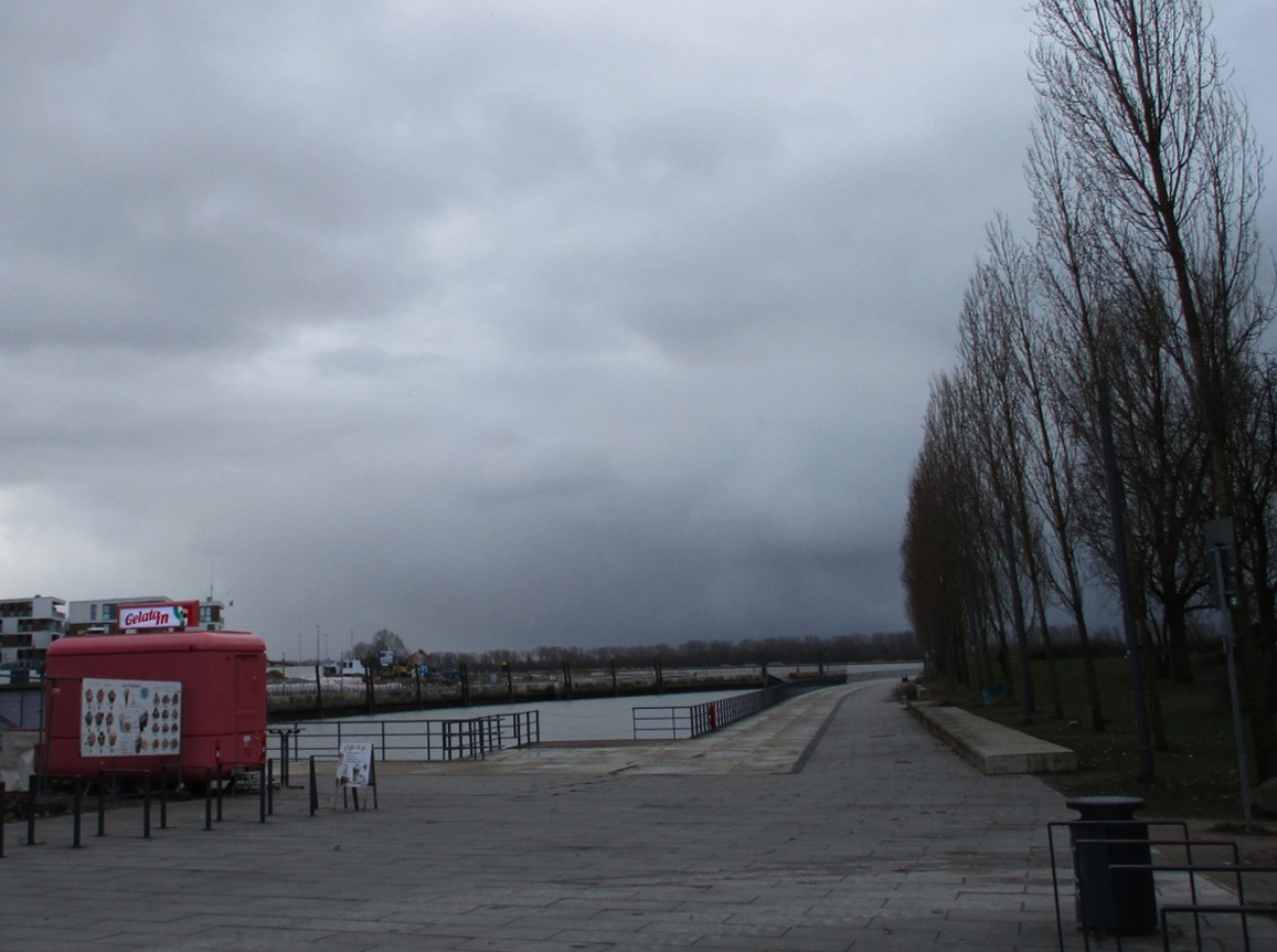 Ich radele gen Schulauer Hafen, gut Rückenwind – unter rasenden Wolkenwechseln, eine dunkle, tiefhängende Front hinter mir, über Niedersachsen alles schwarz.