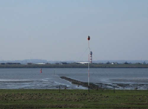 Hohe Tidewasserstände plus Regen begünstigen vernässte Flächen in der Marsch, hier auch: angelegte Muldenvertiefungen – der Geesthang rechts oben.