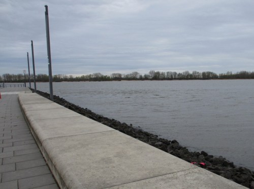 Blick zur Südwestecke des Schulauer Hafens – von links drückt der Südost das Wasser turbulent ums Eck.