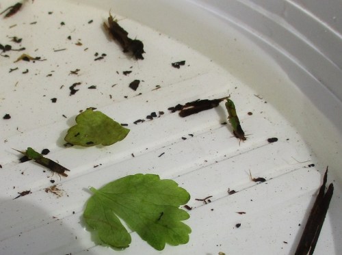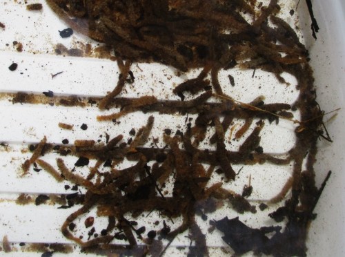 Der auch Kleineres Untersuchende weiss, dass ein „Röhrchen-Angebot“, leer, gern von Sekundärbesiedlern angenommen wird – oft von kleinen Wurmarten. Da mit bloßem Auge keinerlei Bewegung festzustellen ist, nehmen wir mal an, dass die Zuckmücken vor nicht allzu langer Zeit in ihr Luftstadium gewechselt sind.