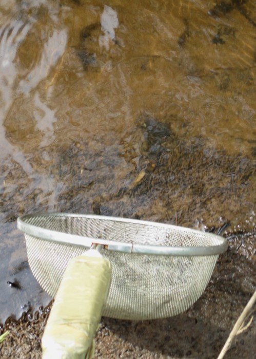 Und – Überraschung – eine Eintagsfliegenart, die in umliegenden Einzugsgebieten frühsommerlich reichlich vorkommt, hier ringsum bisher fehlte, ist auch vertreten.