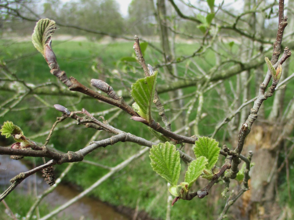Wer die Schwarz- / Rot-Erle nicht an Stamm, Wuchsform, Blatt erkennt, nimmt vielleicht die vorjährigen Samenstände zuhilfe.
