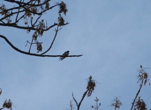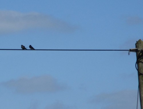 Rauchschwalben vollführen elegante Fliegenfang-, vielleicht auch Spaßflüge im Umfeld des Bullenfluss, durchjagen die Überfahrt – sicherlich Insekten unter der Brücke erbeutend.