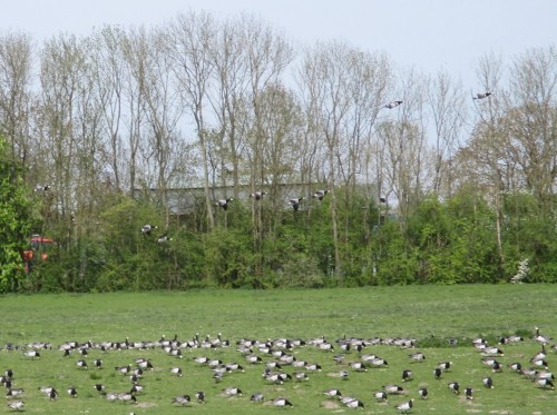 Es ist immer erfreulich, bei Fuß- oder Radwanderungen so vielen verschiedenen Lebewesen zu begegnen. Die großen Nonnengansscharen haben es mir besonders angetan, wahrscheinlich deshalb, weil ich noch nie die Bekanntschaft dieser Gans gemacht habe.
