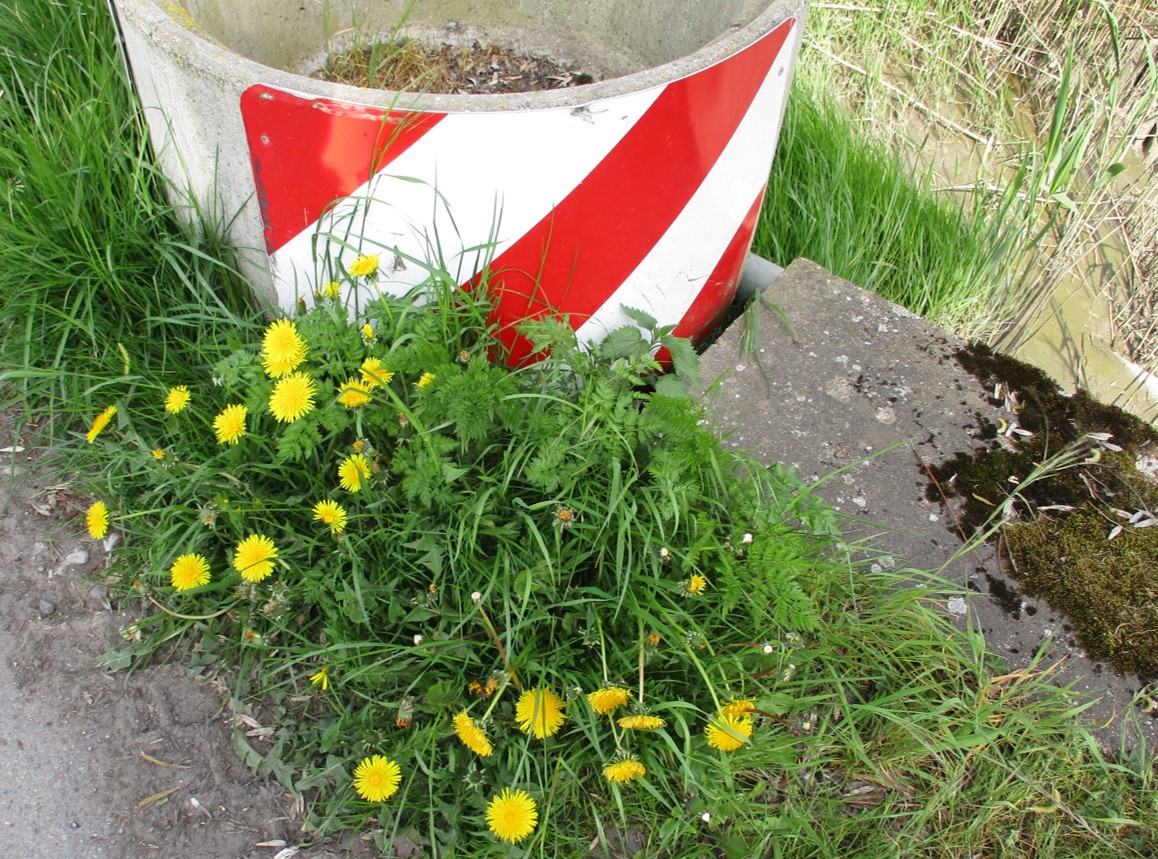 Elbdeich Hetlingen – Frühlingsgelb bestimmt das Deichvorland, bis es demnächst von Schilf, Rohrkolben und Binsen überwachsen wird.