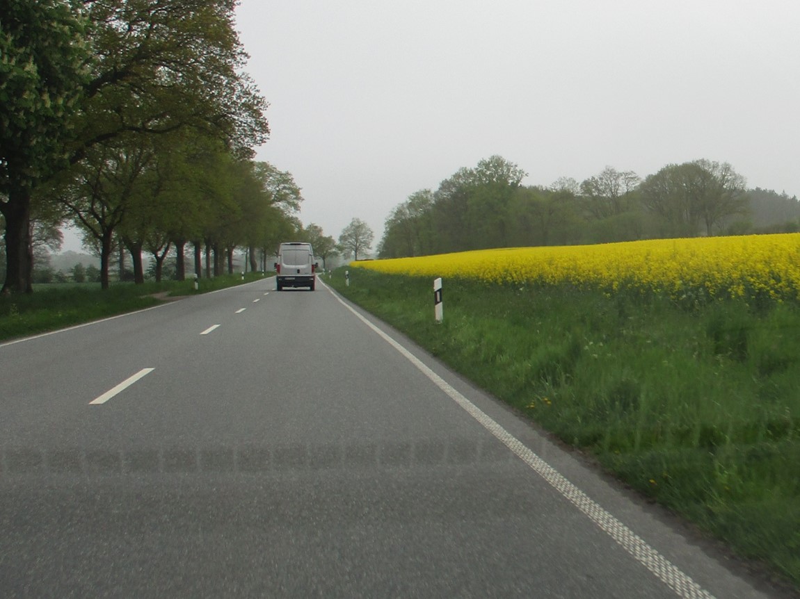 Wieder öfter zu sehen, je weiter man sich von Wedel nordwärts bewegt: Frühlingsgelb, Raps – Preise, Subvention und mehr verändern die Flächennutzung. (Hoppla, da fällt auch schon der Rapspreis angesichts des großen Flächenangebots …)