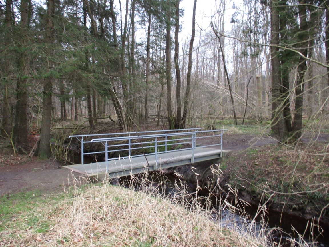 Ich bin weiter bachauf gefahren, zum Steg Richtung Waldbühne Ellerhoop (Foto aus dem norddeutschen Winter) – unserem vereinbarten Treffpunkt.