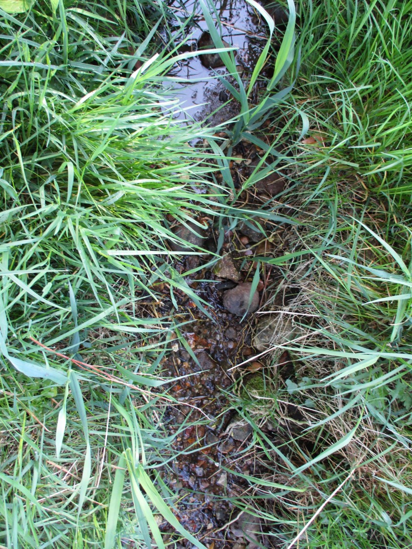 Die Wasserführung ist inzwischen so weit gesunken, dass das Waldbachwasser dem Bilsbek auf den letzten Metern im Porenlückenraum des neuen Kieses entgegenfliesst.