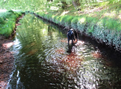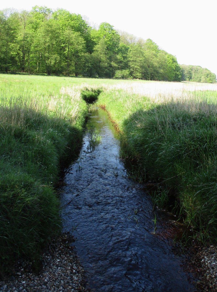 Nach meinen Blog-Beiträgen zu Moräne, Moränenbach und Moor sowie Interpretationsfehlschlüssen, die sich beim Betrachten von Karten, Ansichten vor Ort ergeben, war ich gebeten worden, am Querungspunkt Bilsbek (kann aufgrund Sprachgrenze mit „der“ oder „die“, ggf. wechselnd, genannt werden) für Erläuterungen bereit zu stehen. Sieb und weisse Schale kündigte ich an, so dass auch die Lebewesen im Bach betrachtet werden können.