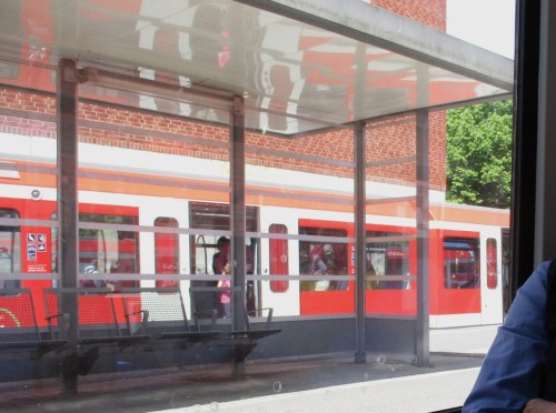 Und weiter geht`s, die Mühlenau bachab entlang, Richtung Bahnquerung. Neben dem Kies unter dem Buchenbogen querab Rosengarten sitzen zwei Enten.