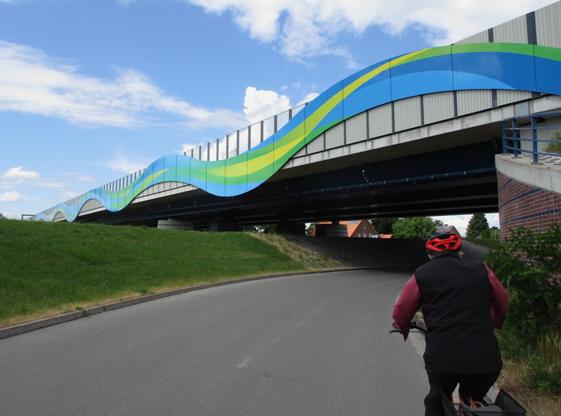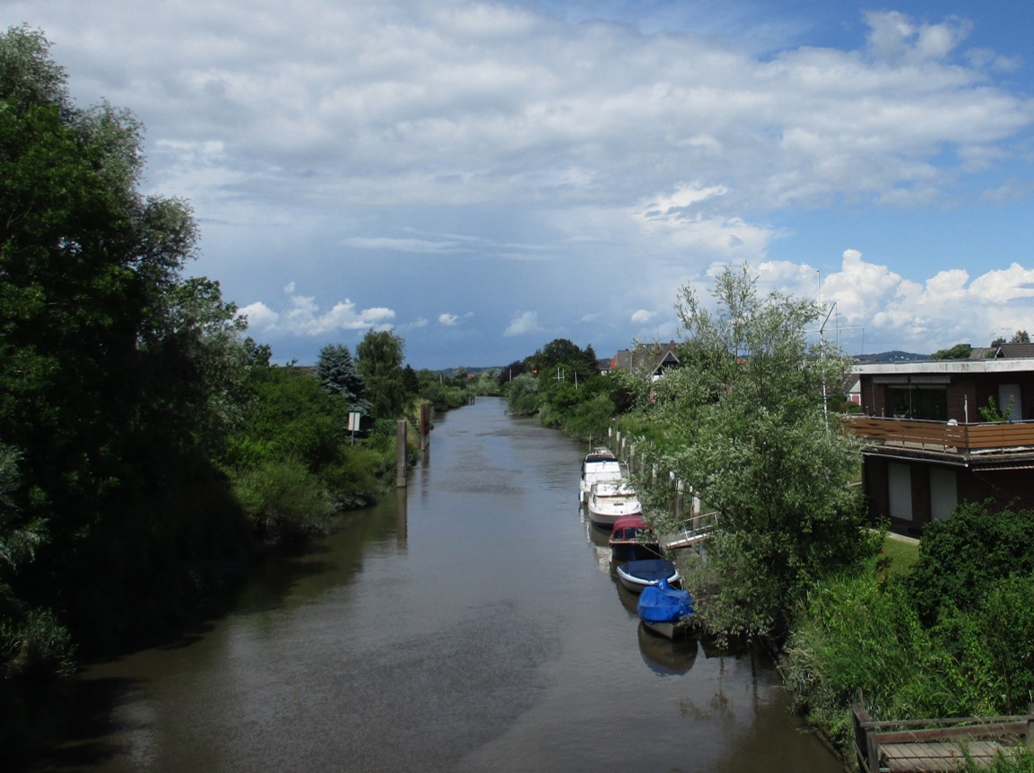 Drunter durch, wellig, zusammen mit der Este, Deich-eingefasst. – Wir haben zu tun … – Der Wind …
