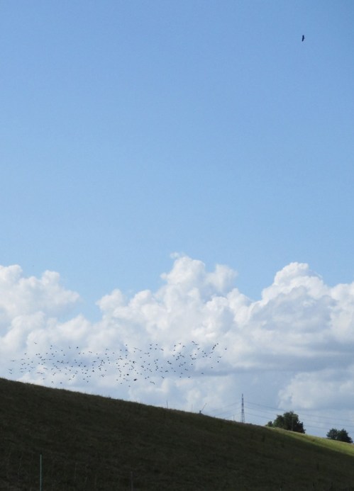 Da habe ich, kurz vor Lühe, einen Starenschwarm fotografiert – sehe dann auf dem Foto, dass hoch oben ein Seeadler kreist.