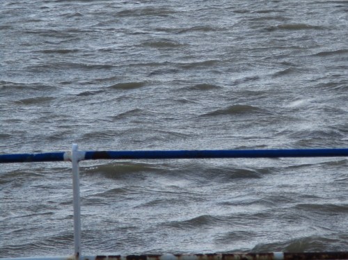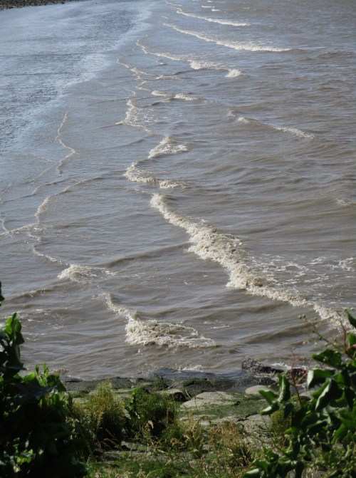Gut Wind, weiterhin – Dünung wirft schlickig aufgewühlten Grund ans Ufer.