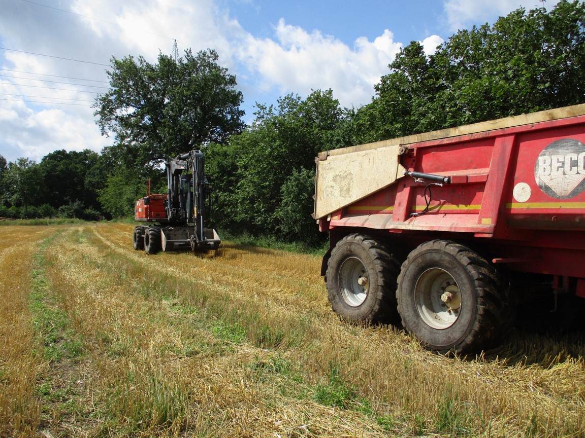 Unsere dritte und letzte Stelle. Die Gerste ist geerntet, das Gelände gut befahrbar – freie Fahrt zum Bach.