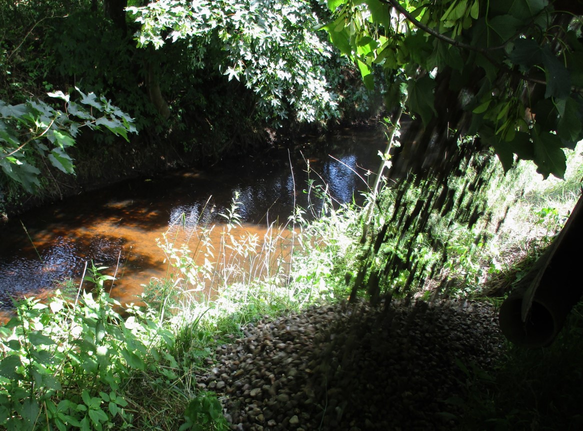 Immerhin wird der Bachlauf hier von begleitender Baumkulisse beschattet – enorme Hilfe angesichts ansonsten vorherrschenden Fehlens der natürlichen / naturnahen Situation und der Verschärfung durch den Klimawandel.