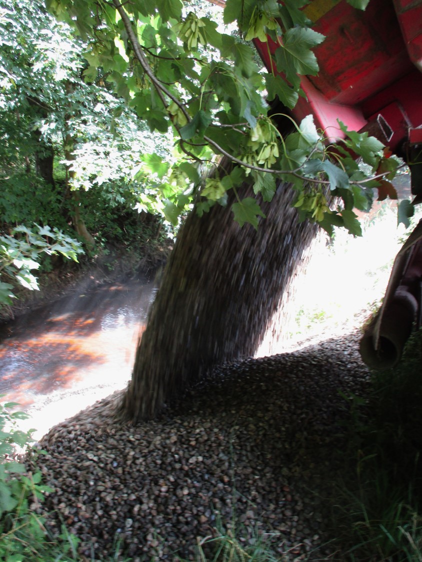 Alles drin! ? – Das ist mengenmäßig nicht zu schätzen, verschwindet angesichts lokaler Besonderheit. Es dürfte sich um ca. 14 t Kies handeln.