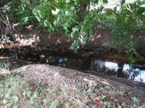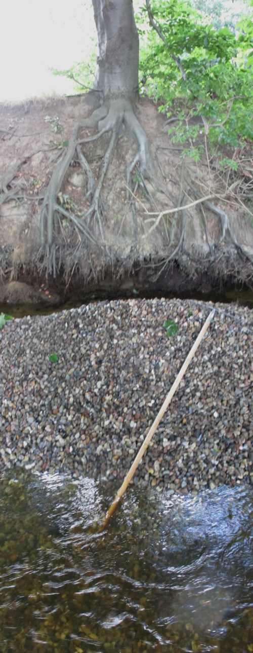 Da liegt eine ganze Menge Kies, fast verschwindend angesichts der nicht vorhandenen Struktur zwischen Niedrig- über Mittel- zum Hochwasserprofil. Diese Übertiefe und Überbreite ist schon etwas „Besonderes“.