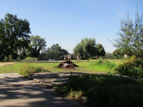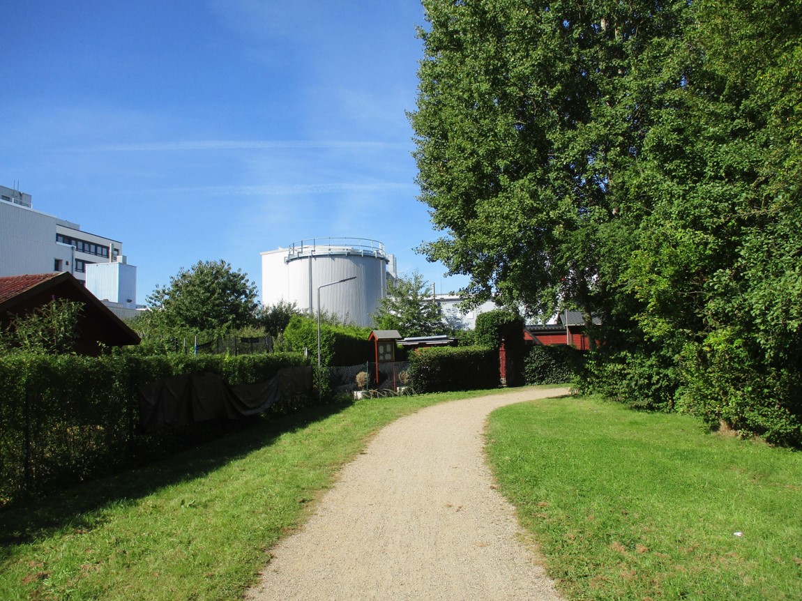 Ein Wegstück zweigt ab, biegt dann wieder nach Norden – nachgefragt: Ja, durch das Kleingartengelände kann man radeln, kommt hinten wieder heraus.