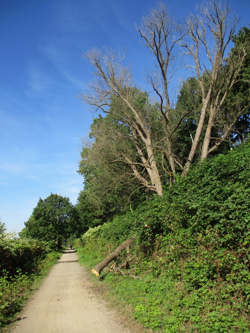 Wo Bruchwaldbäume wachsen, bricht auch schonmal etwas. Weiter entfernt auf dem Weg wird eine dunkle Querlinie sichtbar.