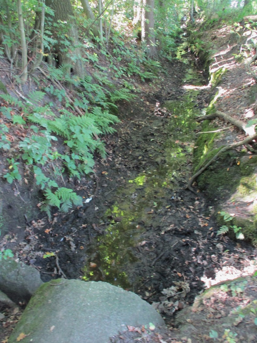 Auf der Höhe verläuft ein tief einschneidender Graben – angesichts der Klimawandelüberlegung „Schwammstadt“ fängt man am Besten gleich oben an!