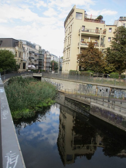 Leipzig baut wie ein Weltmeister. Ein ambitioniertes Ziel ist das Offenlegen der früher so zahlreichen Mühlgräben. Dass dabei in Stadtenge eher „Betonkästen“ herauskommen, ist angesichts der Entrohrung fliessenden Wassers, Wiederentstehen von Lebensräumen, gleichwohl ein Gewinn.