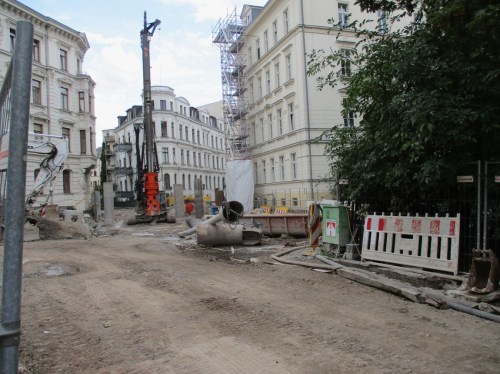 Poniatowskiplan im hinteren Bildende – abgespundet, Baustellenfortsetzung.