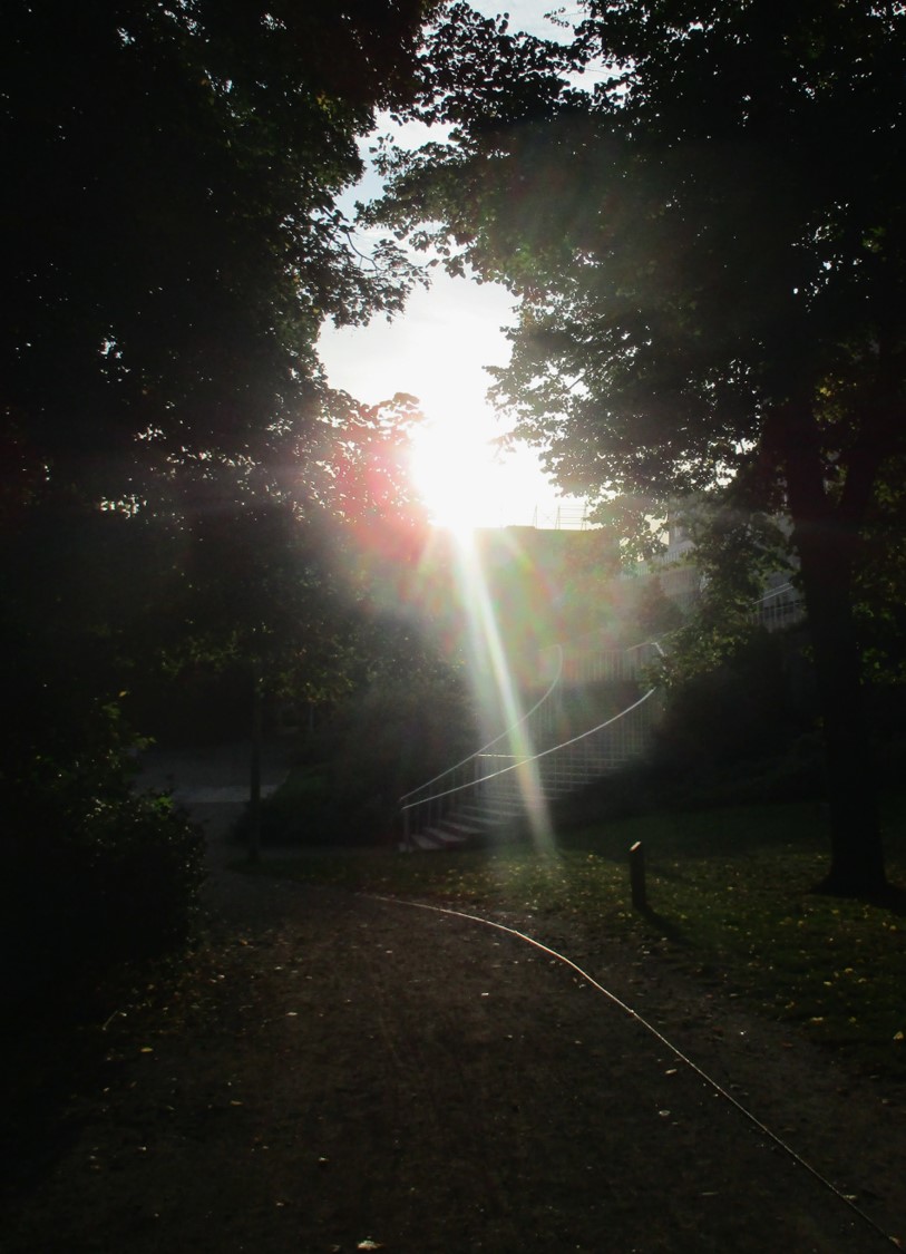Sonnenblick auf Wendeltreppe im Oberen Park.