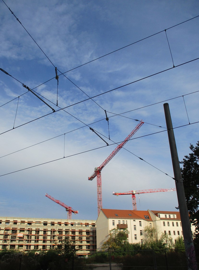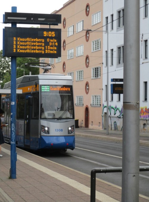 Aber da! – „Meine“ Straßenbahn, in Gegenrichtung – es gibt also doch, auch hier, Leben in Leipzig.
