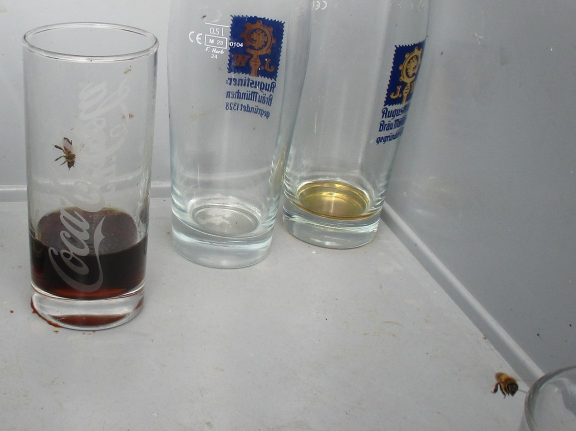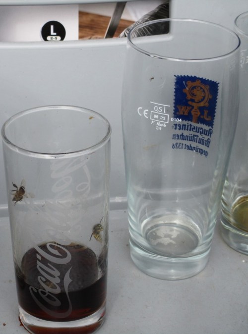 Cola und Bienen, vor und nach Genuss – was gibt das für einen Honig? – Egal, die Völker sind schon für den Winter eingefüttert, holen hier ein paar Extras.