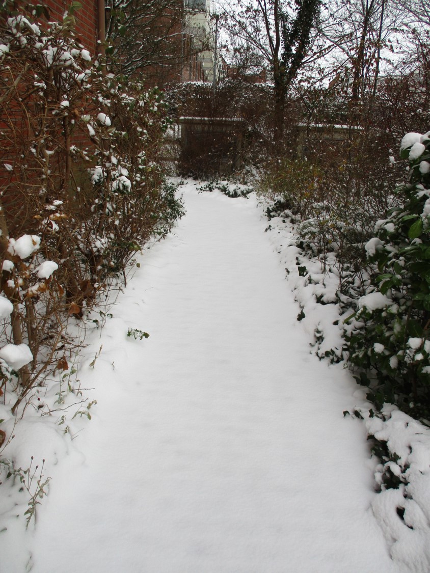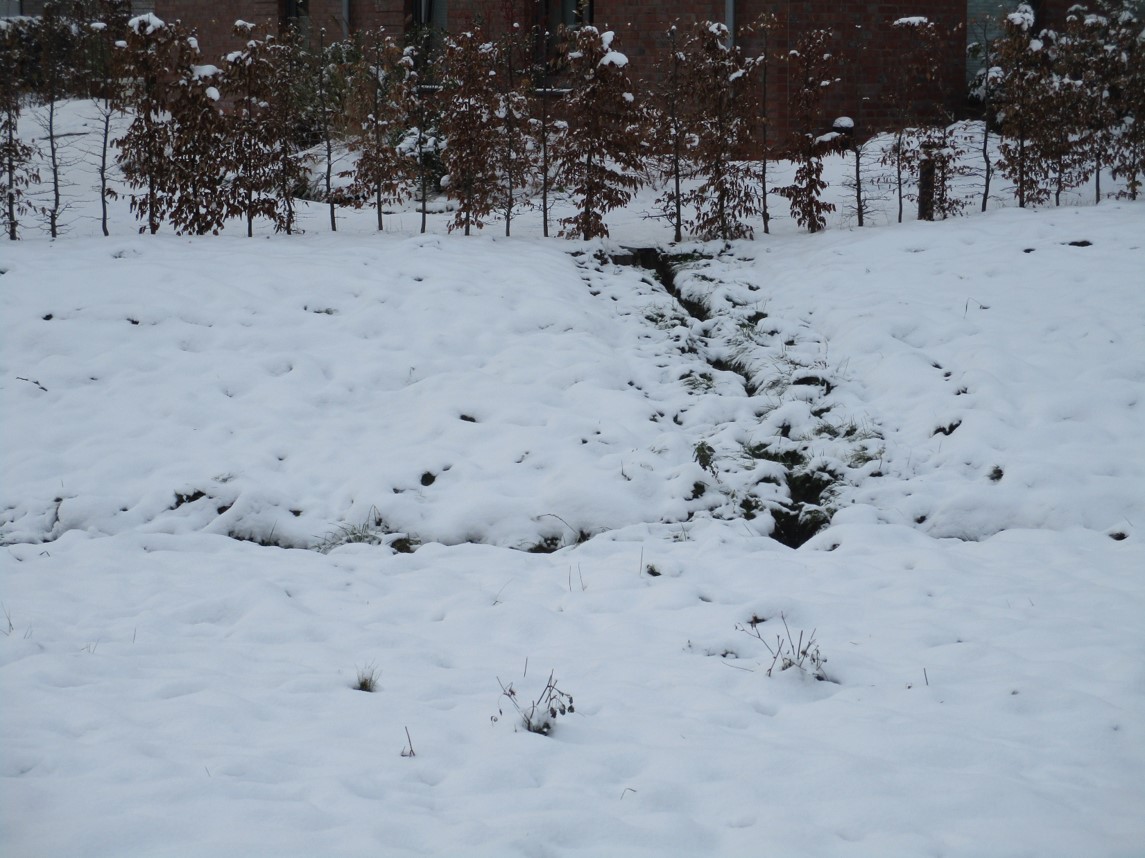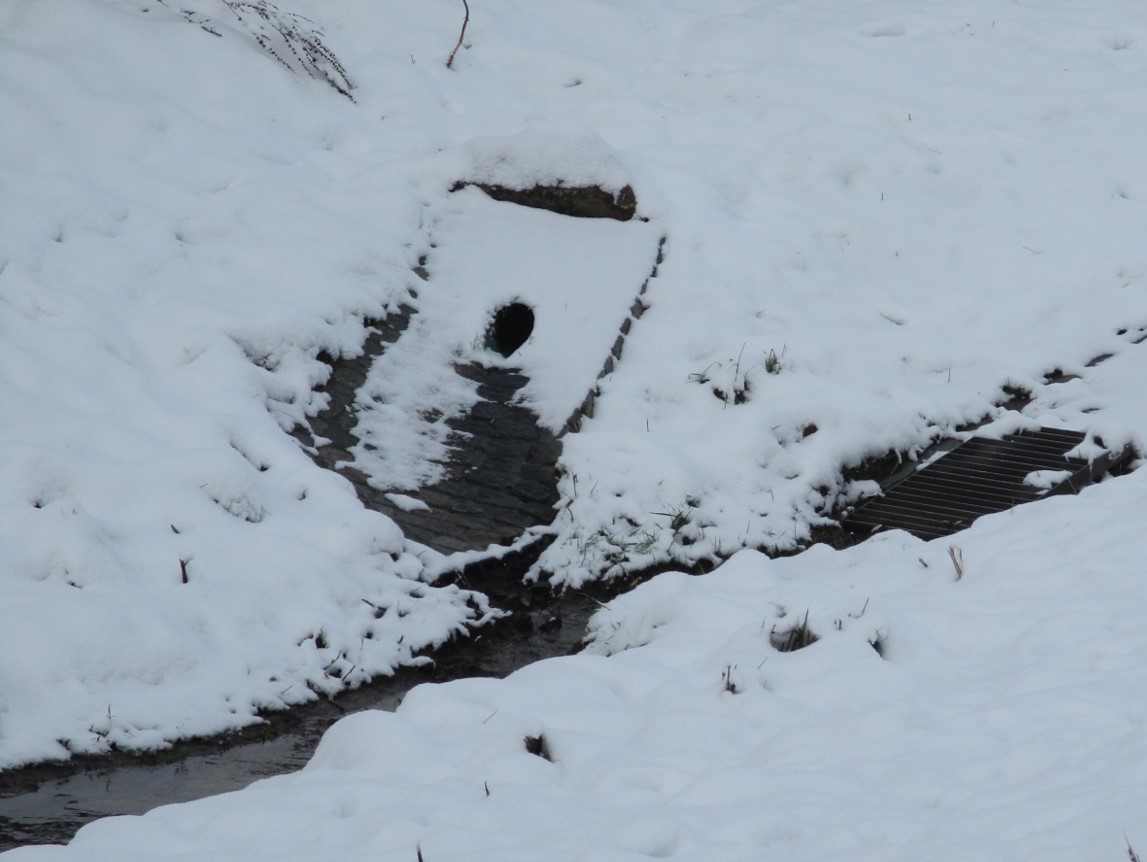 Nun aber zurück in die „aktive Schneezeit“, als noch Zuwächse zu erleben waren – auf in den Grünen B-Plan, mit Regenwasserweg, zu Fuß.