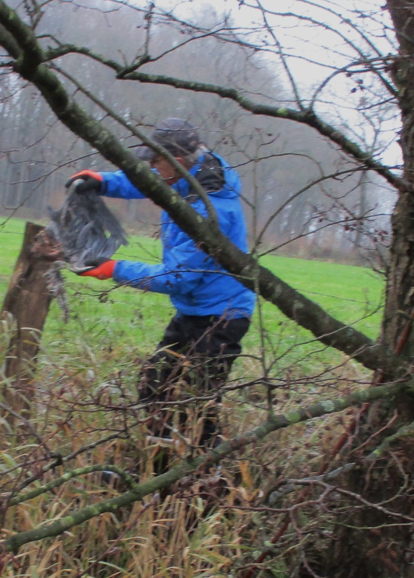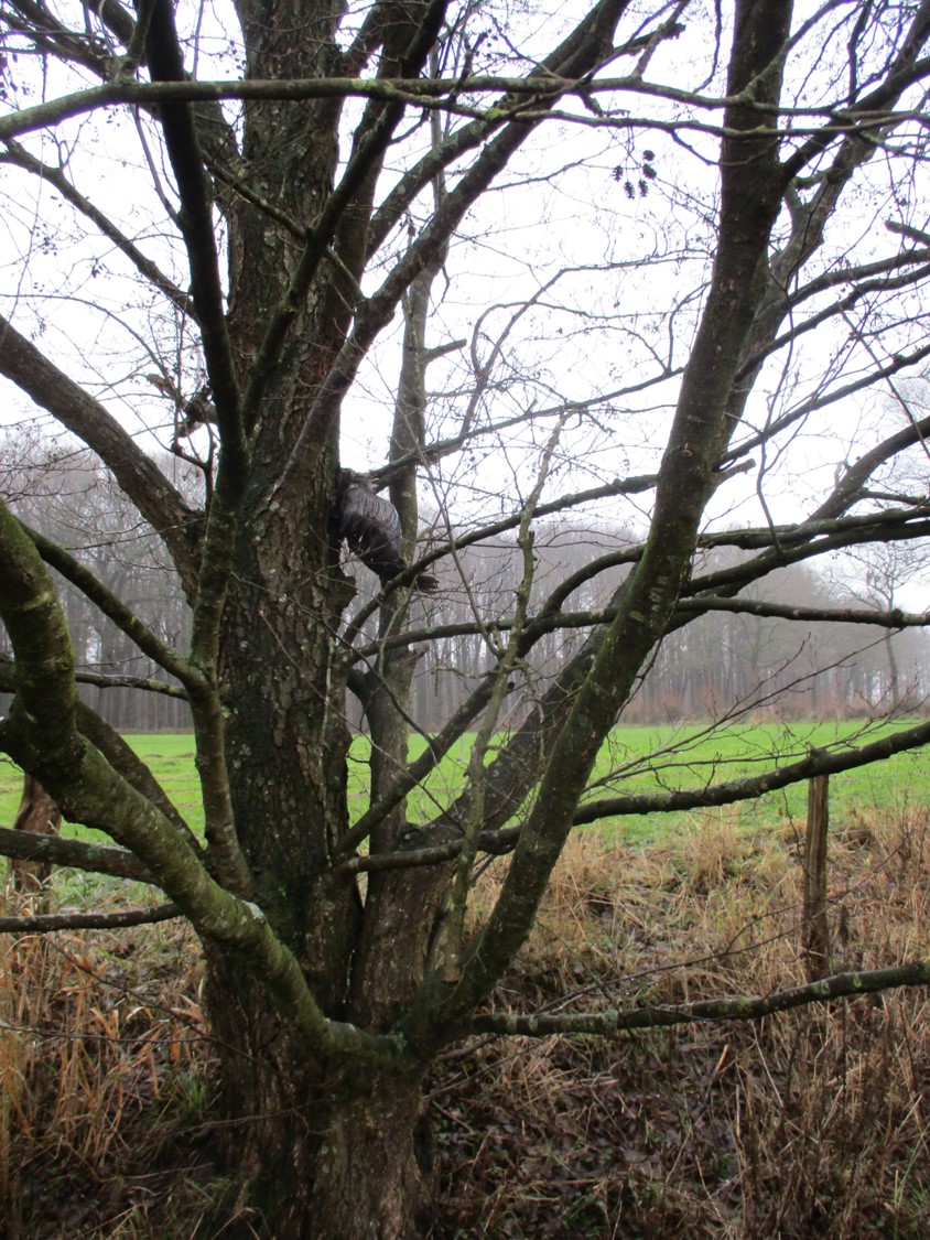 Auch, wenn`s auf dem Foto wie ein Putzlumpen aussehen mag – das war mal ein Graureiher, das Gefieder noch voll intakt. Etwas zammelig hängt der Hals herunter.