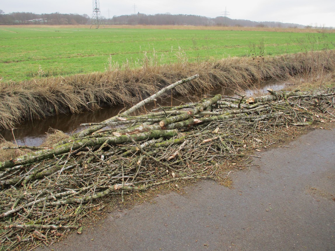 Beim Wegfahren nutze ich die Dorfstraße Richtung Quickborn-Renzel. – Oha, wohl ein verstopftes Rohr – sicherlich keine beabsichtigte Moorentwicklungsunterstützung.