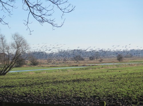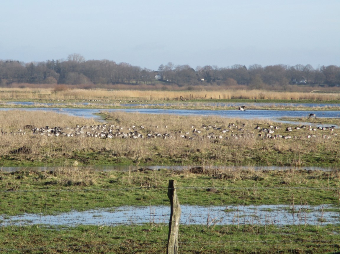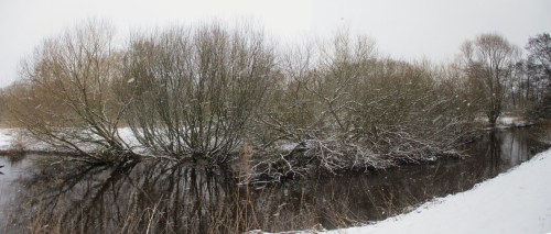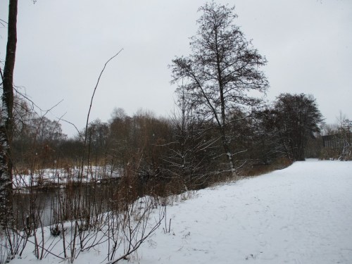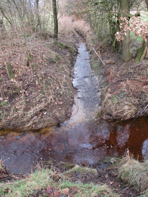 Ganz anders im Frühjahr nach – wie jüngst – reichen Winterniederschlägen. Da strömt aus der großen Fläche des Himmelmoors, wie sich das gehört, pottschwarzes Wasser.