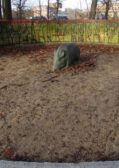 Da ist – in Anspielung an frühere Zeiten – auch ein Wildschwein, gezäunt gehaltenes Jagdziel, symbolisch hingestellt.