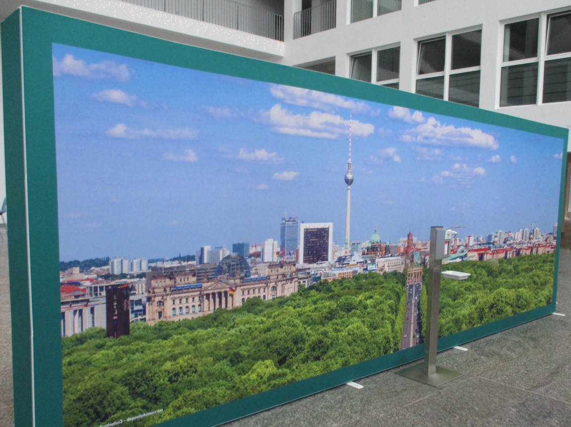 Drinnen, Berlin in der Übersicht – bereitstehendes Desinfektionsmittel passt in die Jahreszeit, zur Erkältungswelle mit den HNO-Meldungen.
