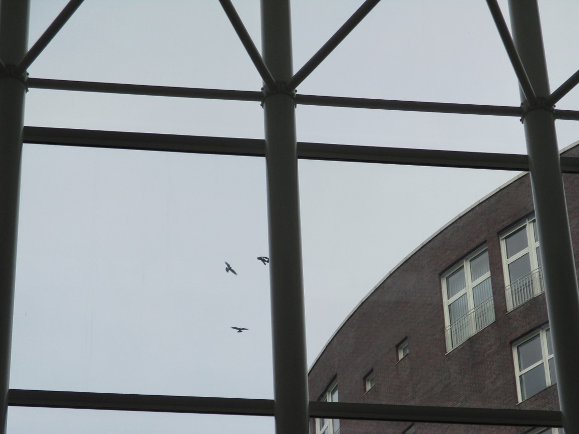 Blick nach oben, der Himmel gerastert – kann man hier, wie die alten Römer (waren die das?) durch Beobachten des Vogelflugs …