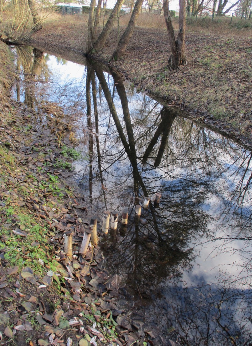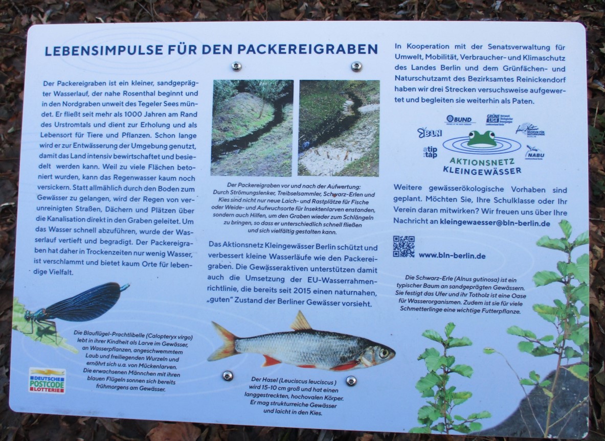 Am Packereigraben, Reinickendorf, Berlin, sahen wir uns an, wie das erste Test-Restaurieren vor gut einem Jahr die Wechsel zwischen Niedrigwasser und Hochwässern bislang überstanden hat.