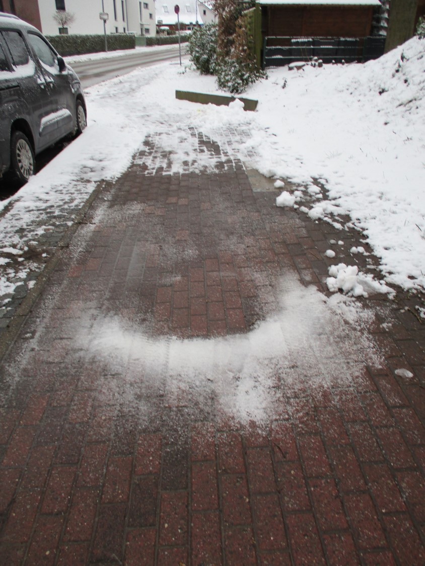 Der Halbmond mit wohl 1 Pfund Salz kommt mir irgendwie bekannt vor (verlinkt mit Foto aus Beitrag vom 7. 12.2023). Scheint keiner zu merken, keinen zu interessieren, keiner zu melden – bekommt der Bauhof Wedel also eine Mail von mir.