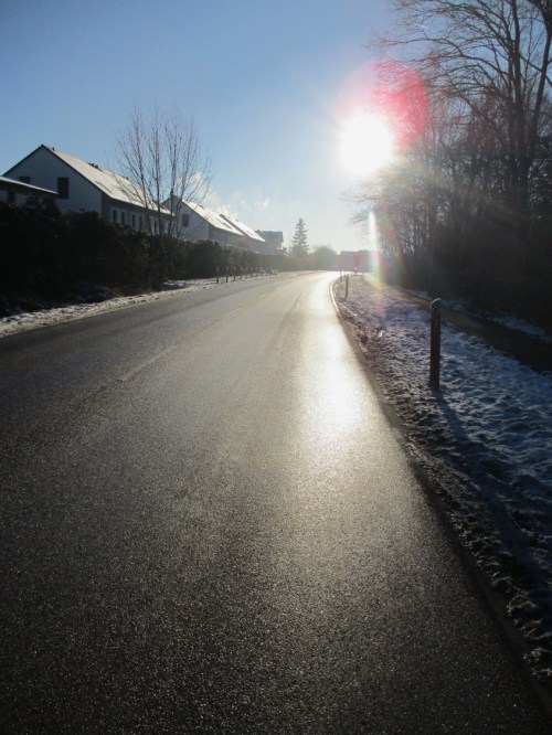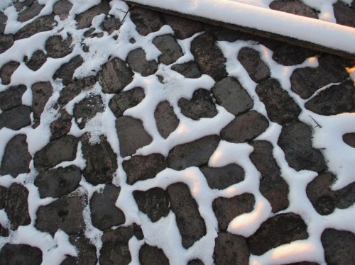 Schnee und Kopfsteinpflaster, so ist das ok. – Die Wegesituation stellt sich saison- und Anlieger-Aktivitäts-bedingt äusserst unterschiedlich dar.