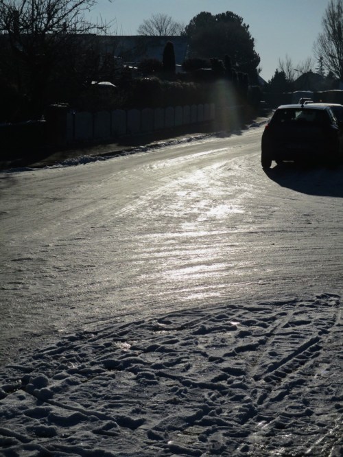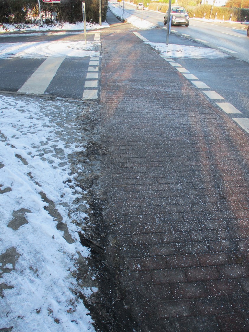 Hier das Gegenstück – nicht prioritäre Straßen bleiben unberührt, entwickeln sich – mit Fußwegen ohne Anlieger-Aktivität – zu sturzverleitenden Eisbahnen.