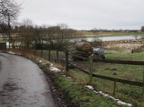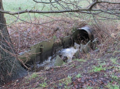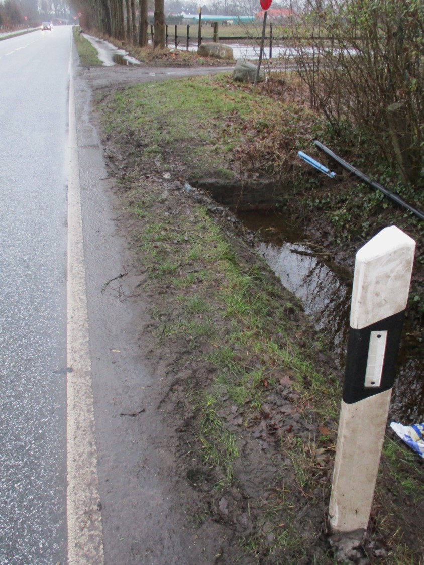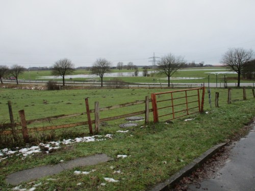 Jüngst pumpte IZ-orange-Fahrzeug (Straßenmeisterei ?) mit kleiner Pumpe den die Pferdekoppel unter Wasser setzenden Graben (etwas) ab.