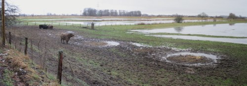 Seenplatte mit Galloways. Die stehen hier, anders als die Highlands im Wedeler Autal, auf trockener Schräge. Zwar ist die Grasnarbe verletzt, die Tiere sinken aber nicht über die Klauen, Knöchel, bis zum Knie im Schlamm ein. Dabei hilft nicht zuletzt auch die geringere Besatzdichte auf gegebener Fläche.