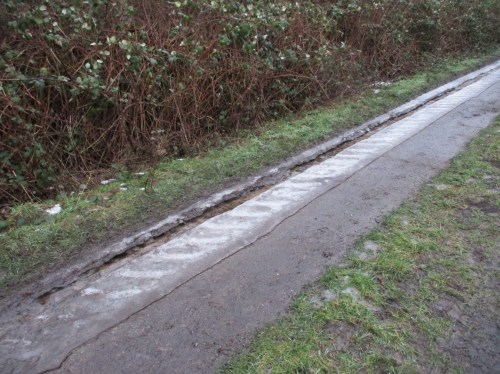 Gelegentlich verbliebene Eis“schienen“ zeigen, dass Aufmerksamkeit geboten ist.