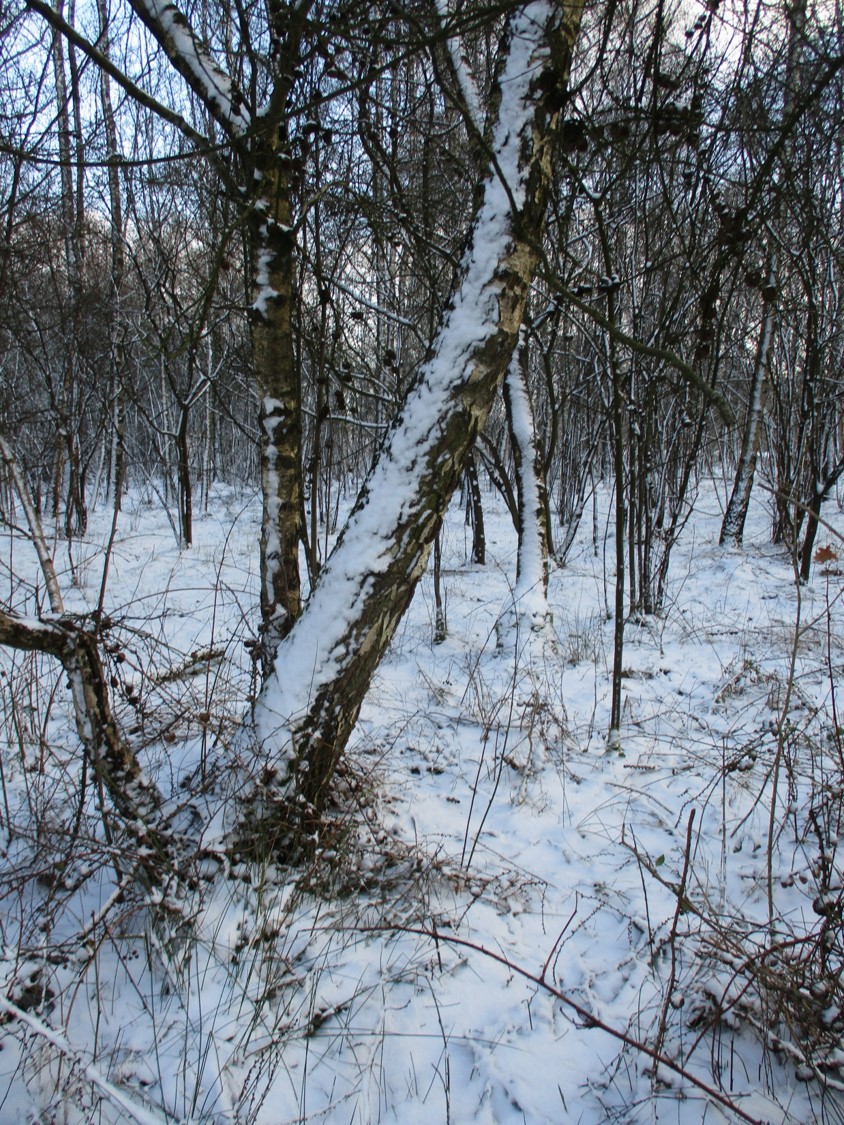 Alt-Erlen im Vormittagslicht – frühlingshaft. Das Weiss ist heute, 3 Tage später, durch Temperaturanstieg auf 10 Grad und Regen fast vollständig verschwunden.