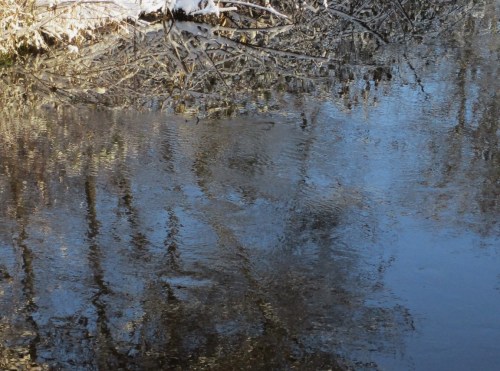 Bislang konnte ich angesichts des erhöhten Abflusses die Gewässersohle nirgends sehen. Hier sind nun die Laichaktivitäten von Forellen im Kies schwach erkennbar.