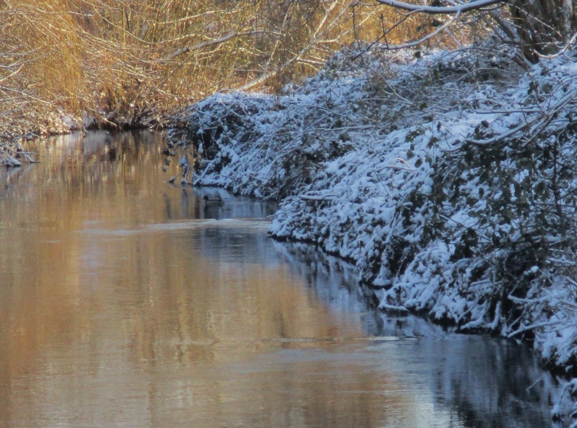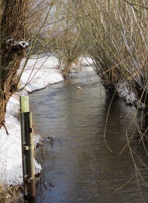 Beim Fotografieren hatte ich mich auf die weisse Wiesenfläche konzentriert. Lange Zeit war hier die Offenau großflächig über die Ufer getreten. Diese tiefliegende Fläche bewahrt, wie die Krückauwiesen, Elmshorn vor Überschwemmung. – Zunehmend lernen Städte, welchen Wert erhaltene Überschwemmungsgebiete darstellen.