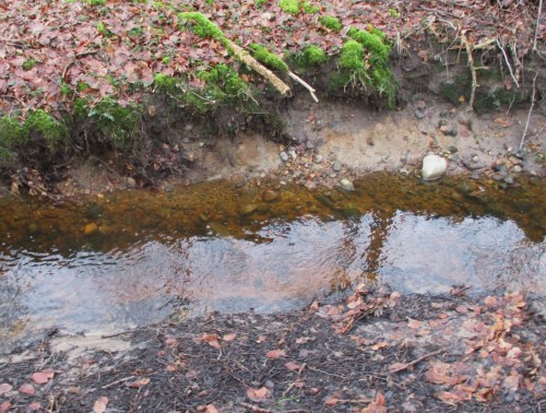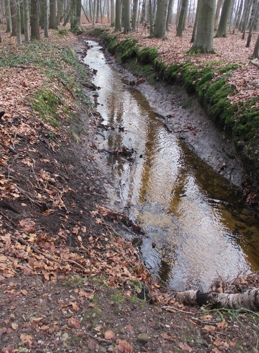 Über lehmiger Schicht befindet sich steinig-kiesig-sandige Schicht. Deren Feinmaterial wird vom Bach ausgewaschen, abtransportiert. Die sich ergebende kiesig-steinige Sohle charakterisiert den hochproduktiven Bachlauf.
