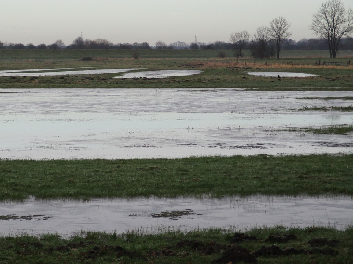 Der Honig befindet sich in meiner Satteltasche – vor dem alten Elbdeich Hetlingen schwanken die Flachseen zwischen flüssig bleiben und vereisen.