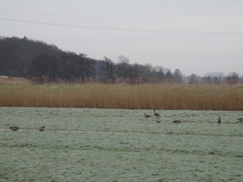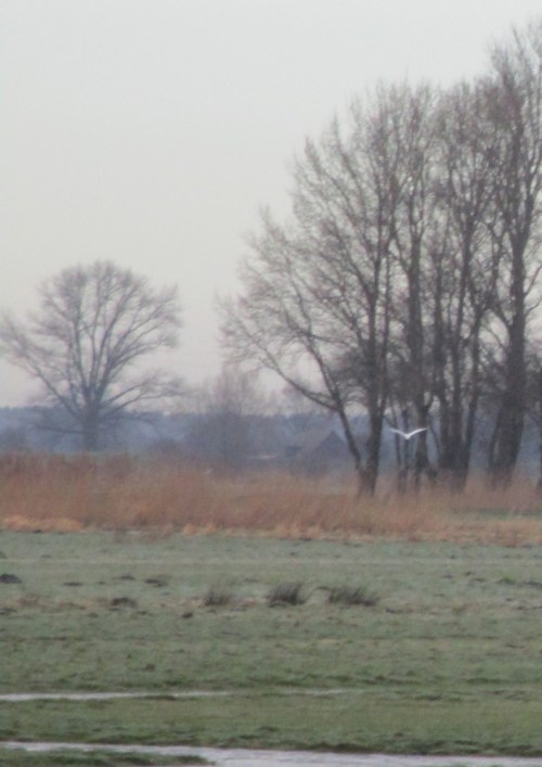 Ihr Flug zieht hin und her – es wirkt, als suchten sie besseres Futter als allüberall stark bereiftes Gras.